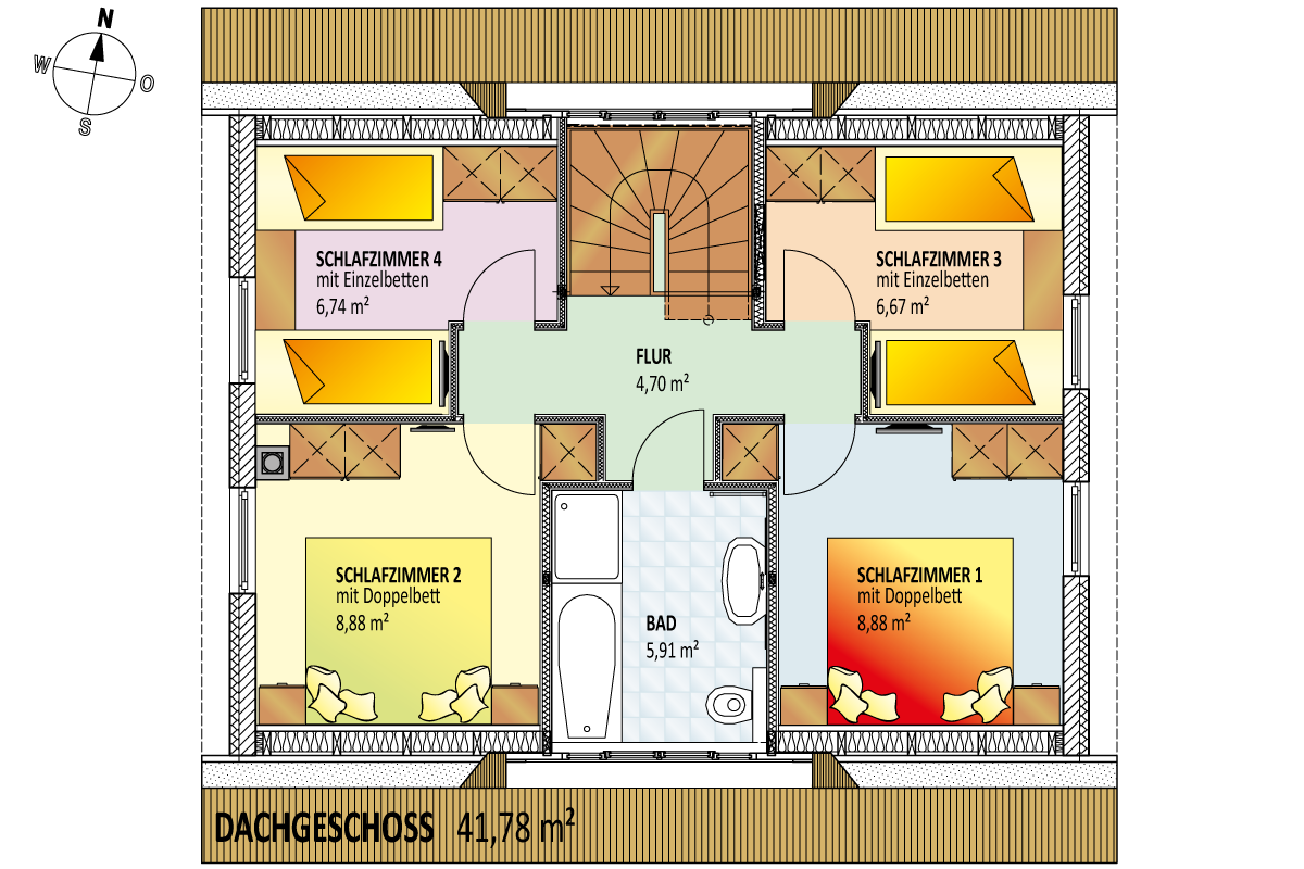 Im Obergeschoss des Hauses sind 4 Schlafzimmer untergebracht.