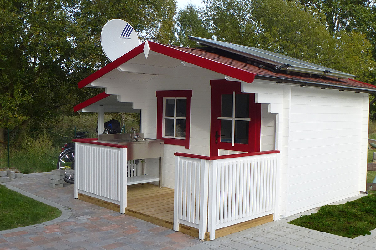 Ein Gerätehaus ist für die Freunde des Angelsportes eingerichtet. Hier finden Sie ideale Voraussetzungen ihre Angelutensilien zu verstauen, ein Fischreinigungsplatz und Filetiertisch aus Edelstahl ist vorhanden. Im Gerätehaus steht eine Kühltruhe zum Einfrosten der Fänge. Weiterhin gibt es Gelegenheit zum Abstellen ihrer Fahrräder. (Einen Fahrradverleih gibt es in unmittelbarer Nähe.) Der Bollerwagen steht ebenfalls im Gerätehaus. Ein Spielplatz für Kleinkinder wurde auf dem Nachbargrundstück angelegt.