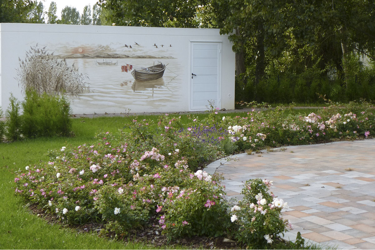 - Am Gartenhaus befindet sich ein überdachter Bereich mit Filetiertisch zum Ausnehmen der Fische